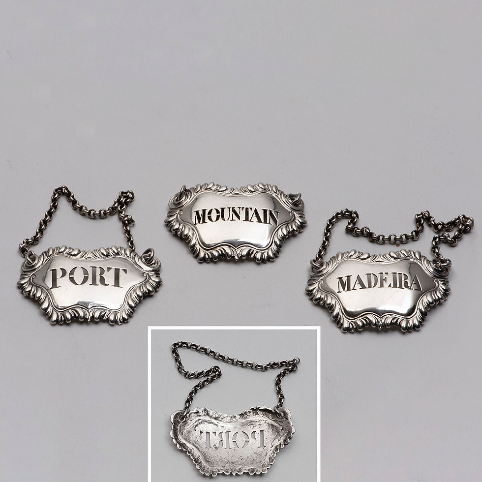 A group of three unmarked silver 18th century English wine labels.