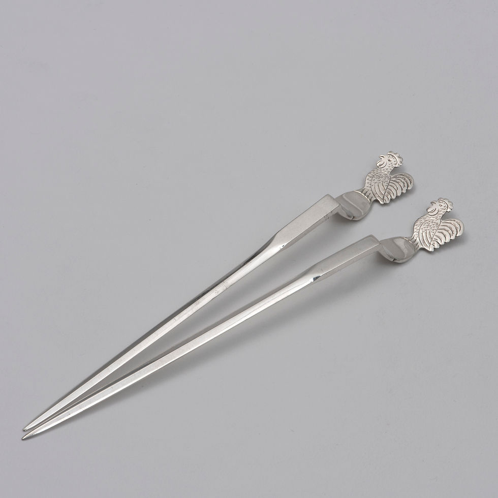 A pair of Victorian silver fiddle pattern Oyster Forks.