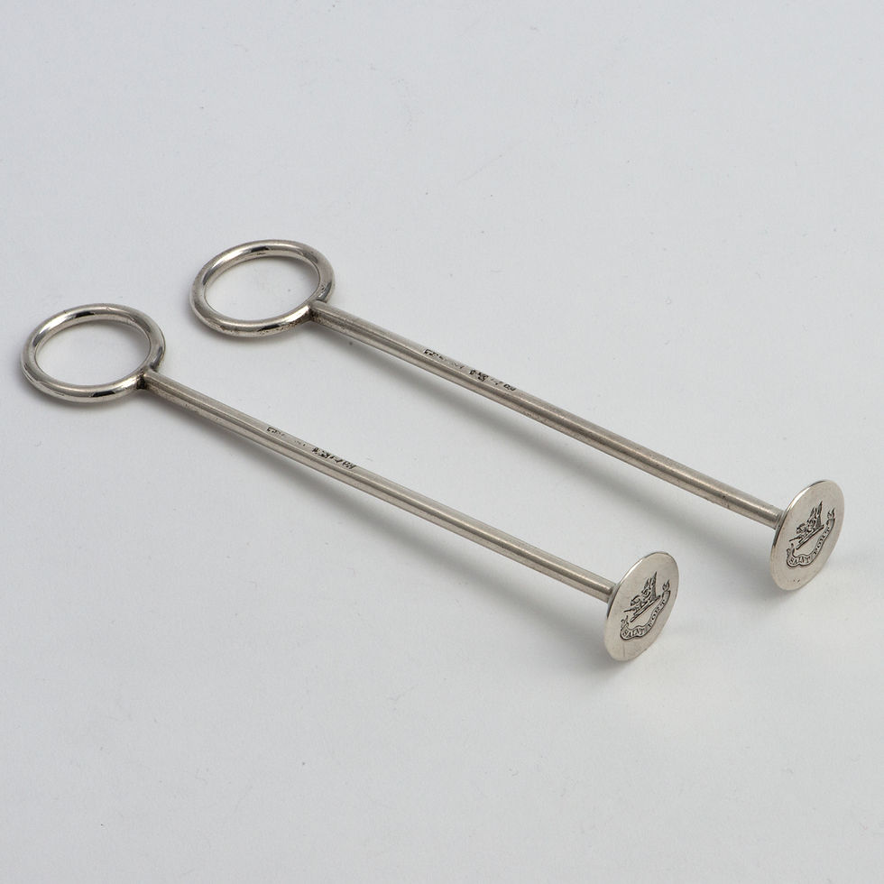 A pair of late 18th century provincial silver Wine labels for W. Wine and Claret
