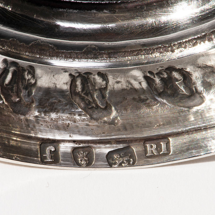 A pair of cast silver George III neoclassical Candlesticks and a matching Taperstick, by Robert Jones, London 1781. Each part engraved with a crest for the Rev. William Norris of Wood Norton Hall and Guist in Norfolk [1727-1798]. Wood Norton Hall, acquired by Norris in 1780, retains some neoclassical features in the entrance hall, perhaps to the design of Sir John Soane. \n \nThese candlesticks and the taperstick were part of a suite of matching silver by Robert Jones, which included a pair of crested Chambersticks and a Salver engraved with a full coat-of-arms. The career of Robert Jones, one of a group of London silversmiths producing high quality silver in the neoclassical style at this period, remains in need of further research. The pattern of this suite clearly derives from the designs of the architect William Chambers' pupil, John Yenn. Condition: \n