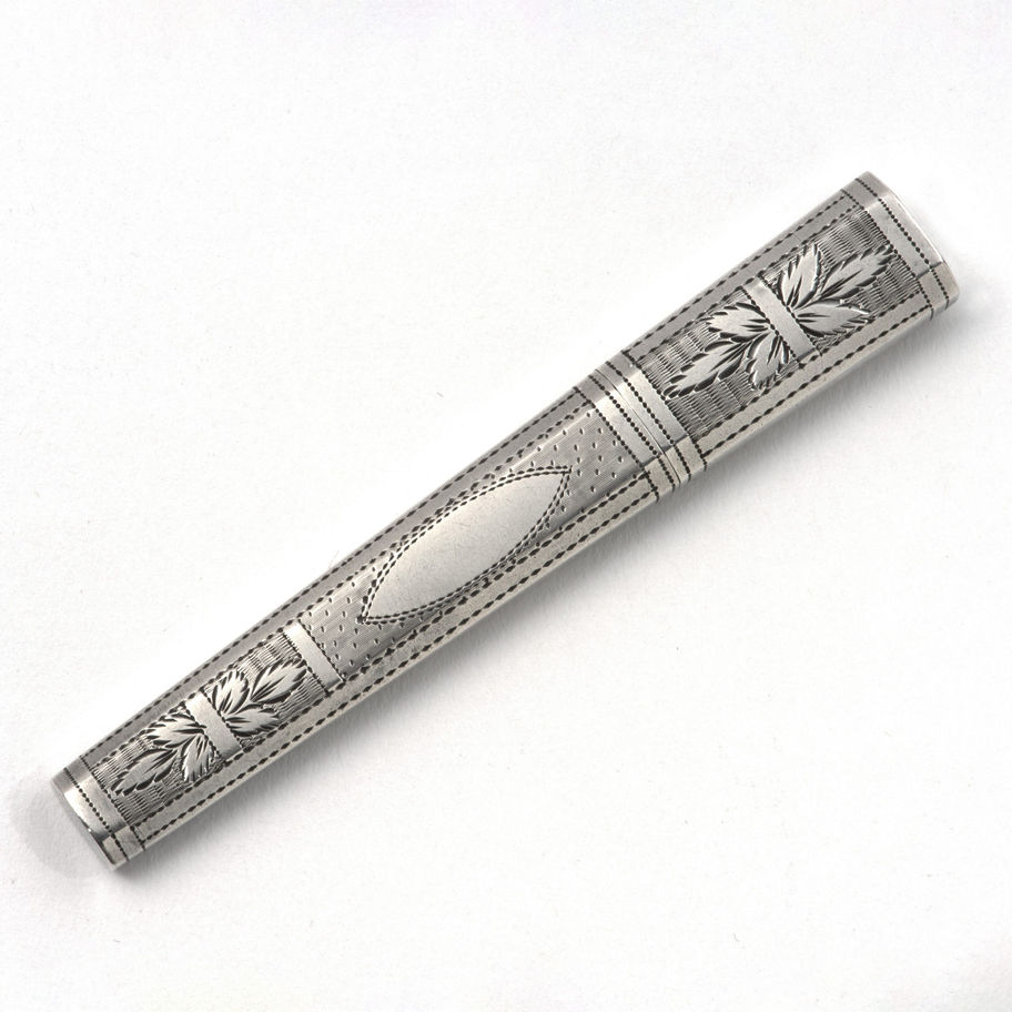 A George III bright-cut engraved Bodkin Case, maker's mark only by Joseph Willmore, of Birmingham, circa 1800. Condition: \n