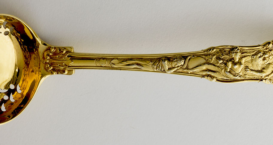 Paul Storr. \nA George III silver-gilt Bacchanalian pattern Sugar Sifting Spoon, London 1820. Condition: \n