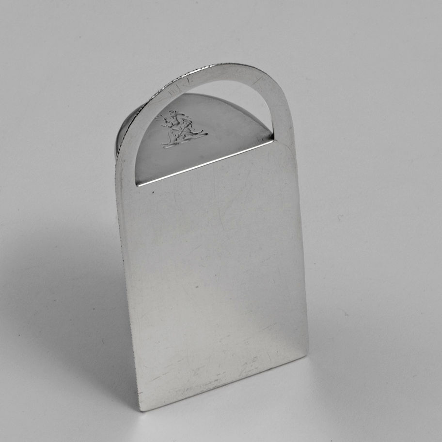 A George III silver and steel 'Kitchen' Nutmeg Grater, London 1818, by John Robins. Engraved with a contemporary crest. Condition: \n