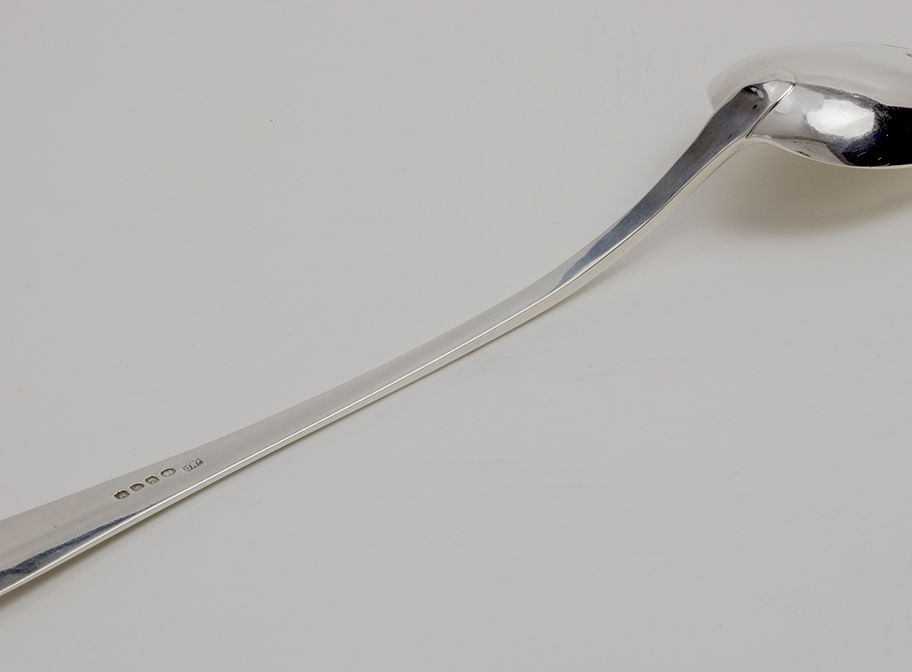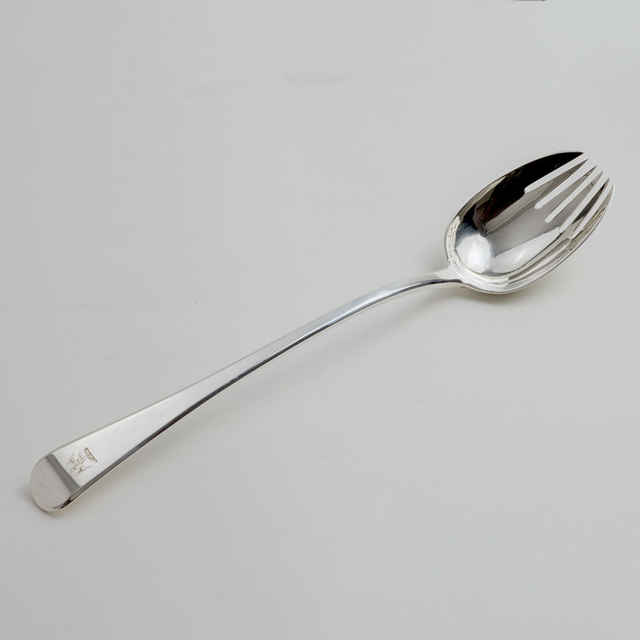 A George III old english pattern silver Serving or Salad Fork, London 1807, by John Wren. Engraved with a contemporary crest. Condition: \n