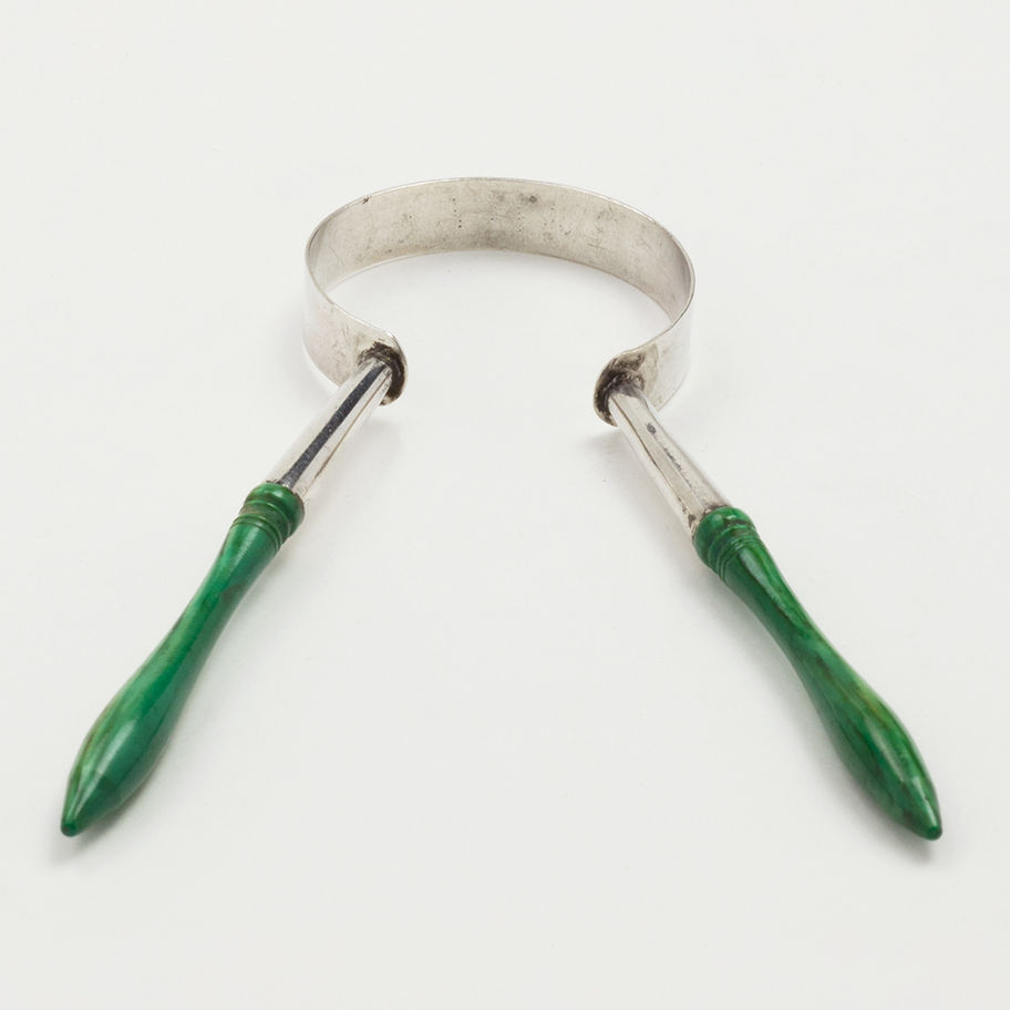 A George III green-stained ivory and unmarked silver two-handled Tongue scraper, circa 1800. Condition: \n
