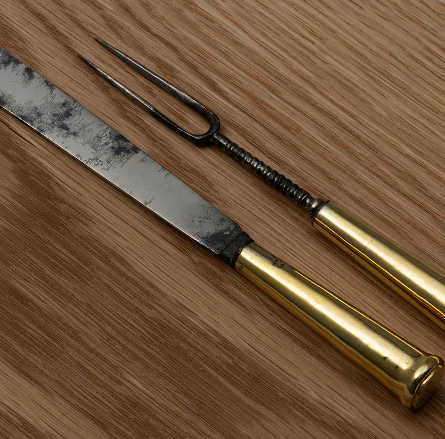 A late 17th century silver-gilt handled English Knife and Fork set.