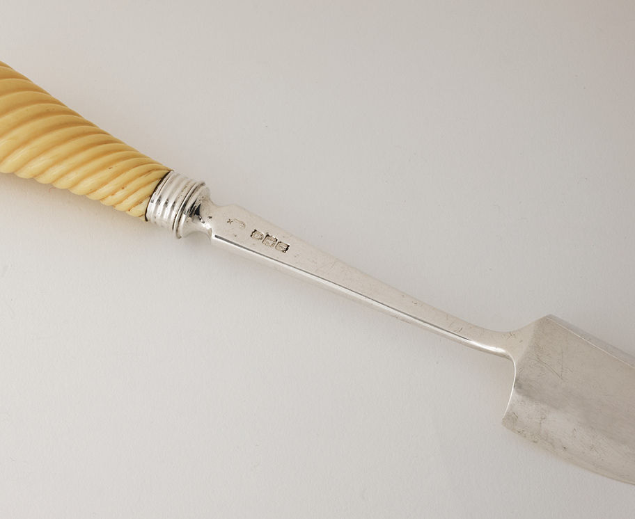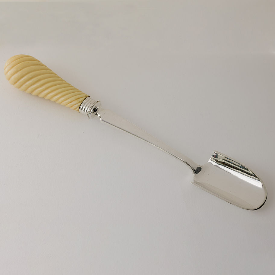 A late Victorian silver Cheese Scoop with ivory handle, London 1899, by Jackson and Fullerton. Condition: \n