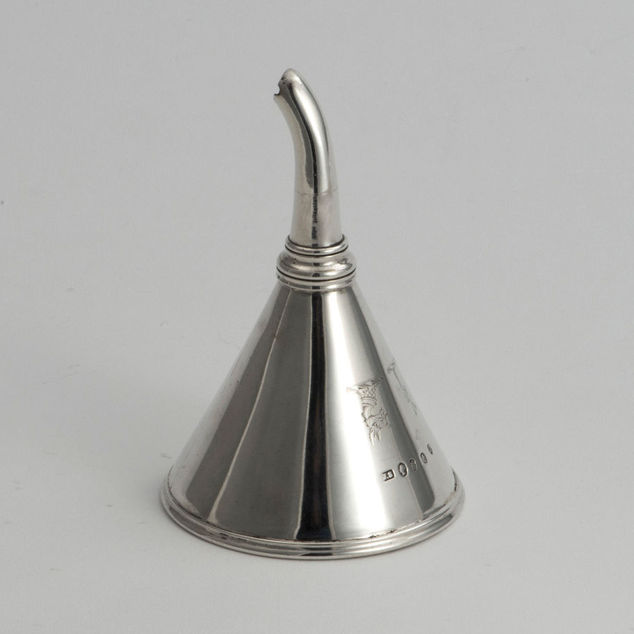 An Irish Victorian silver Funnel, Dublin 1874, by J. Smythe. Engraved with a double crest. Condition: \n