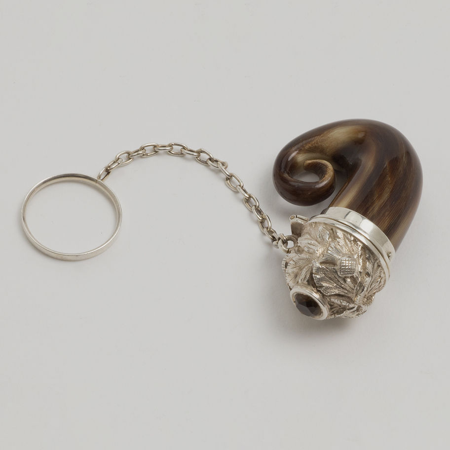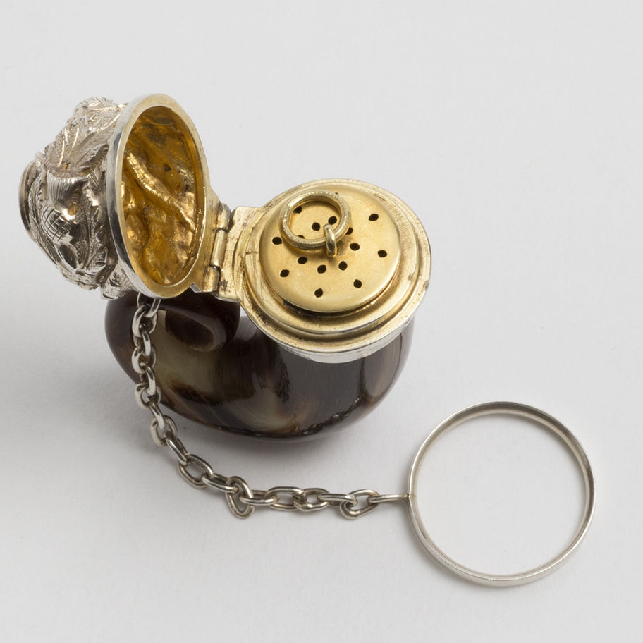 A Victorian Scottish silver-mounted horn Vinaigrette formed as a Mull, circa 1880. Condition: \n