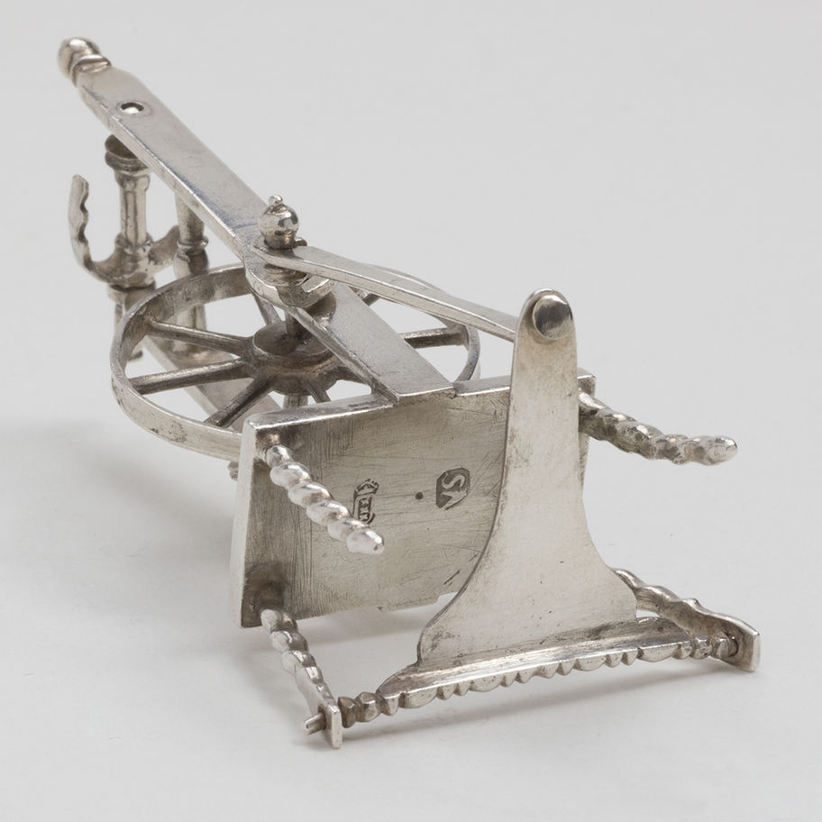 A Dutch toy silver Spinning Wheel, Amsterdam circa 1730, by Willem Van Strant. Condition: \n