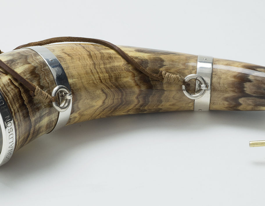 A Victorian silver mounted horn Flask, London 1869, Thomas Johnson, retailed by Thornhill, engraved for Charles Donaldson-Hudson of Cheswardine Hall, Market Drayton. Condition: \n
