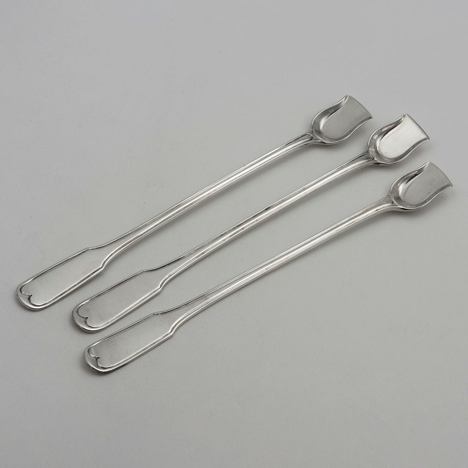 A group of three unusual Victorian small silver serving Shovels with long fiddle thread pattern handles, London 1882, by Samuel Whitford. Condition: \n
