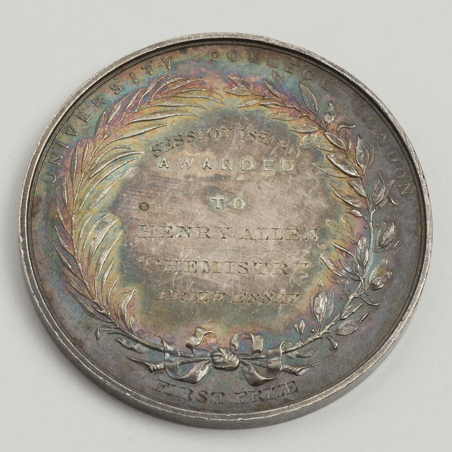 University College, London. \nTwo unmarked Prize Medals, one engraved to 'Henry Allen Chemistry Prize Essay Session 1840/1', the second engraved to the same for Chemistry but for second prize. Condition: \n